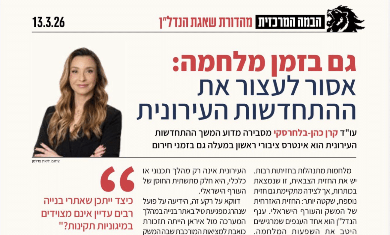 פרויקטים של חידוש פני העיר, לרבות פרויקטים של תמ"א 38, עיבוי בינוי ופינוי בינוי הם מחויבי המציאות. תחום ההתחדשות העירונית הוא…