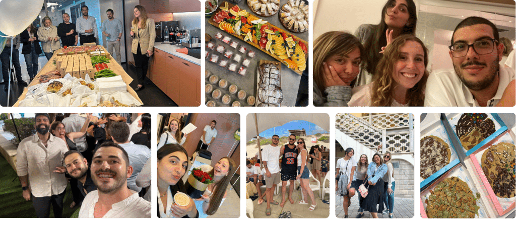 - פעילויות גיבוש לצוות אחת לרבעון, סדנאות העשרה, ארוחות משותפות, טיולים ובונוסים על עמידה ביעדים, מתנות בחגים ובימי הולדת.